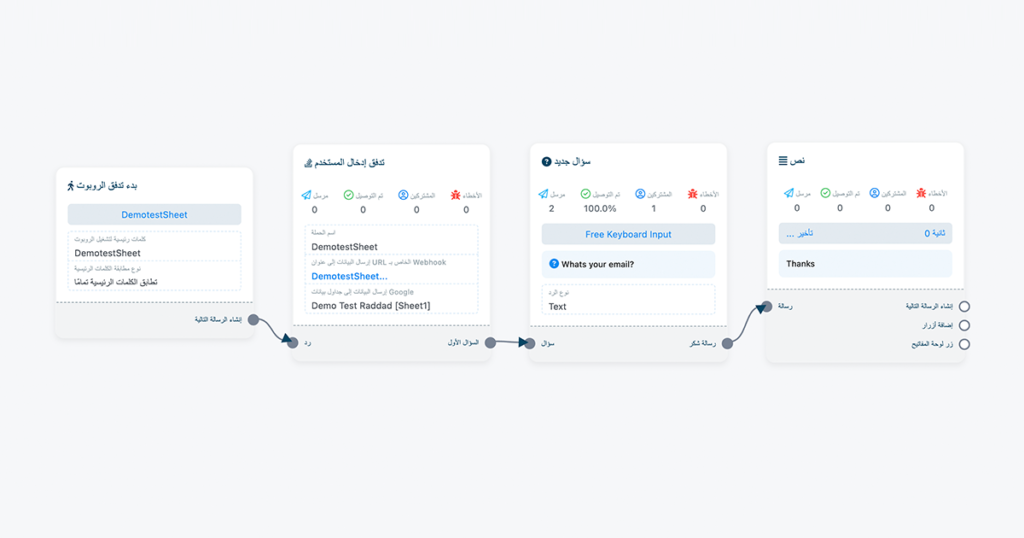 هل ترغب في أتمتة التسويق والدعم الفني عبر تيليغرام (Telegram) باستخدام منصة رداد (Raddad)؟ يمنحك التكامل بين المنصتين أدوات قوية لبناء بوتات تفاعلية دون الحاجة لأي معرفة تقنية.