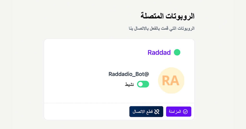 الآن بعد أن أصبح البوت جاهزًا، اتبع هذه الخطوات لربطه بمنصة ردّاد: